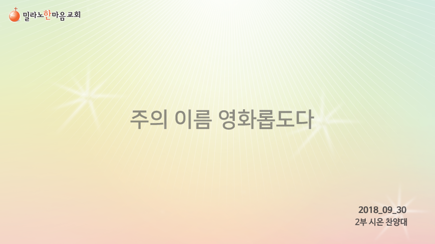 2018년 9월 30일 주일예배 2부 찬양-주의 이름 영화롭도다-시온 찬양대
