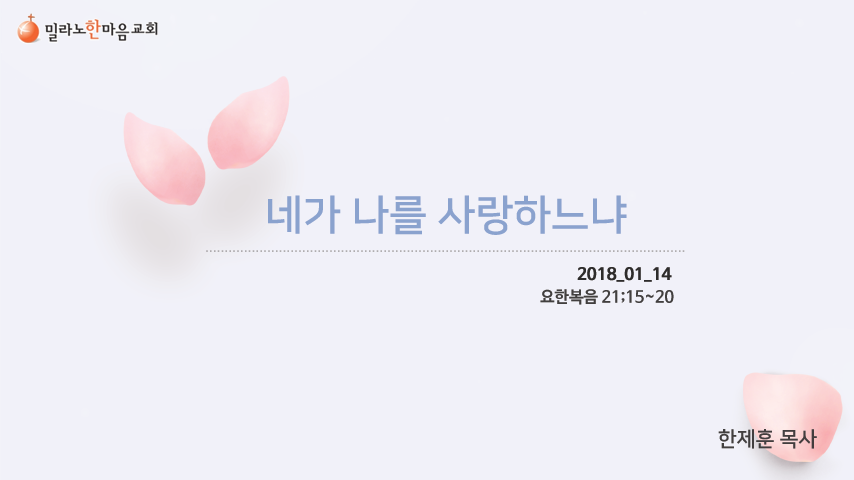 2018년 1월 14일 주일예배 설교-네가 나를 사랑하느냐-한제훈 목사