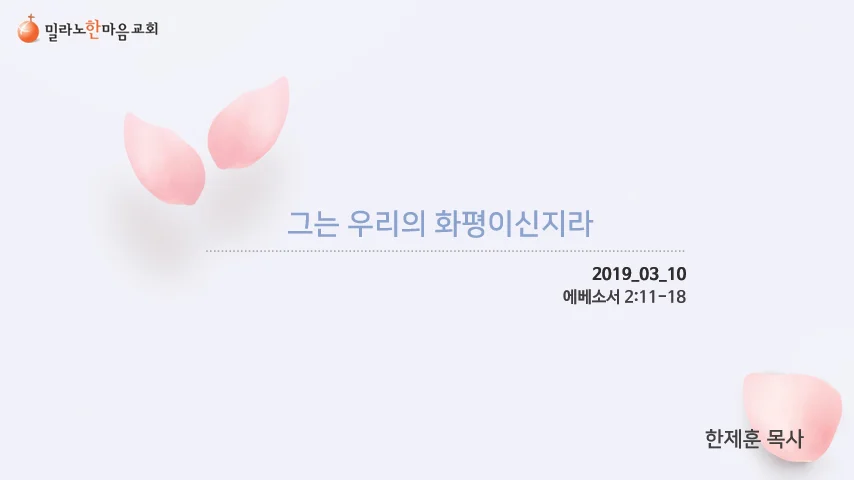 2019년 3월 10일 주일예배 설교-그는 우리의 화평인지라-한제훈 목사