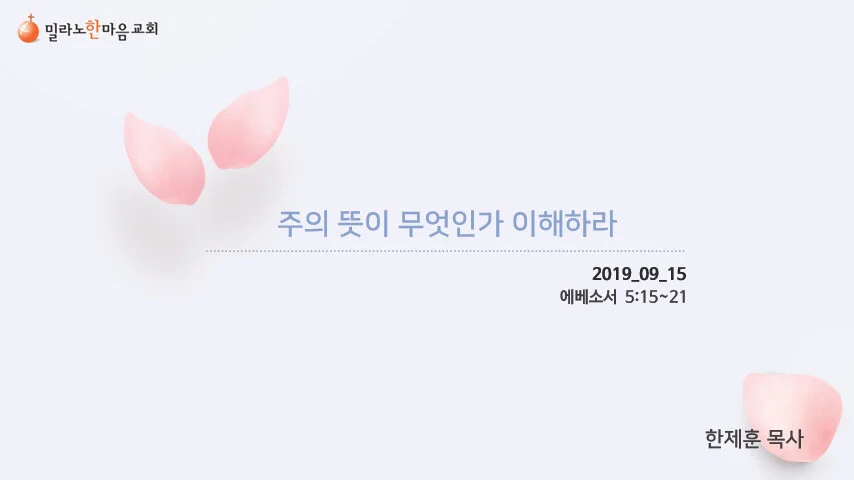 2019년 9월 15일 주일예배 설교-주의 뜻이 무엇인가 이해하라-한제훈 목사